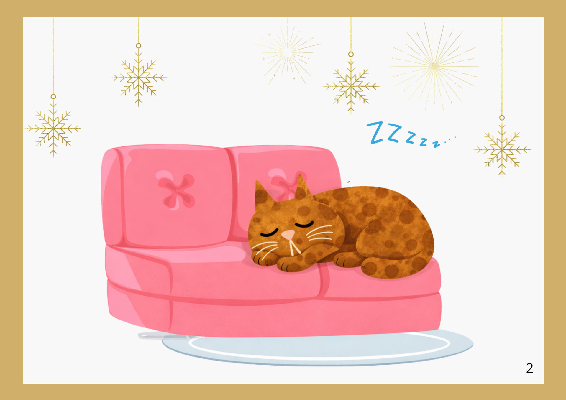 Un chat somnole quand, tour à tour, des visiteurs frappent à sa porte pour lui souhaiter la bonne année !